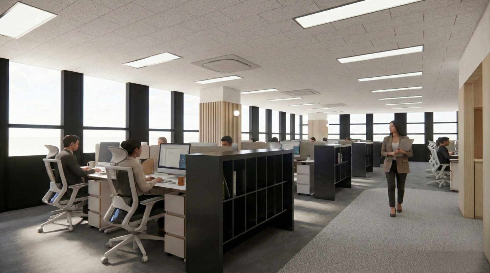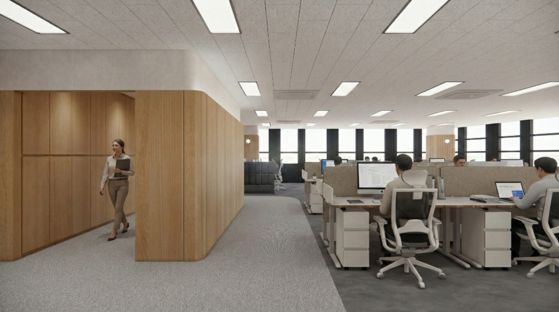 Transparent boundaries and adjustable screens balance openness with privacy, allowing work modes to shift naturally and seamlessly throughout the day.